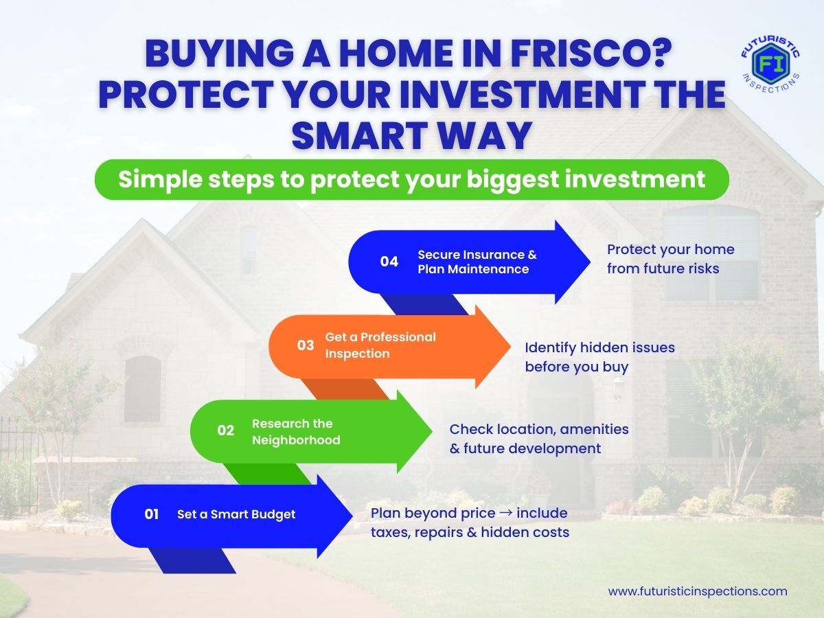 Buying a home is exciting, but it’s also a major responsibility. By combining careful planning, thorough inspections, neighborhood research, and professional guidance, you protect both your financial investment and your peace of mind. Even a small misstep can be costly, but a few thoughtful steps early on can help ensure your home remains a safe and enjoyable place for years to come. At Futuristic Inspections, we’ve helped countless Frisco homeowners identify hidden issues before closing. With expert guidance and detailed inspections, our goal is to make sure every client buys wisely, avoiding surprises and protecting their future.